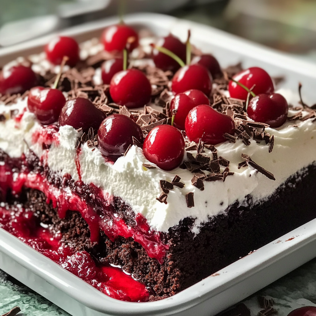 Indulge in the rich and decadent flavors of this Black Forest Poke Cake Recipe. This delightful dessert features a moist chocolate cake soaked in sweetened condensed milk and topped with luscious cherry pie filling, whipped topping, and chocolate shavings. Perfect for parties, family gatherings, or just to satisfy a sweet craving, this poke cake is a showstopper that will impress everyone at your table.