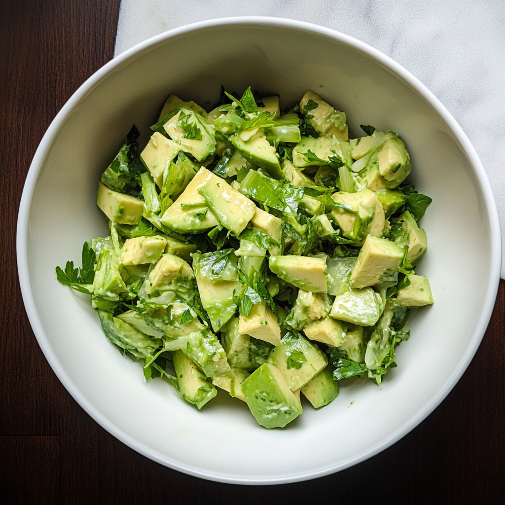 This salad is rich in healthy fats from avocados and provides fiber from celery, making it a nutritious choice for any meal.