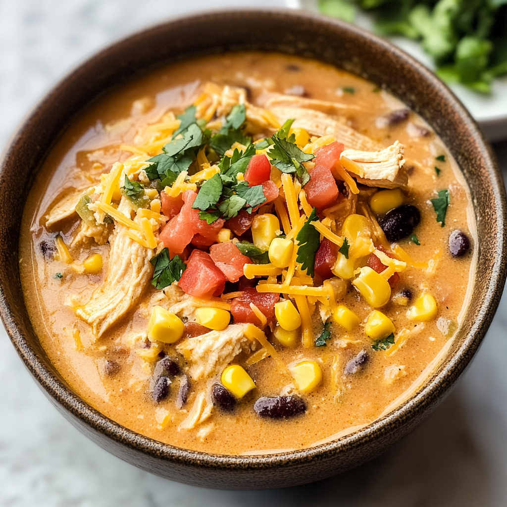 Enjoy a quick and delicious Chicken Taco Soup filled with flavorful ingredients. Try this easy recipe today for a hearty meal!