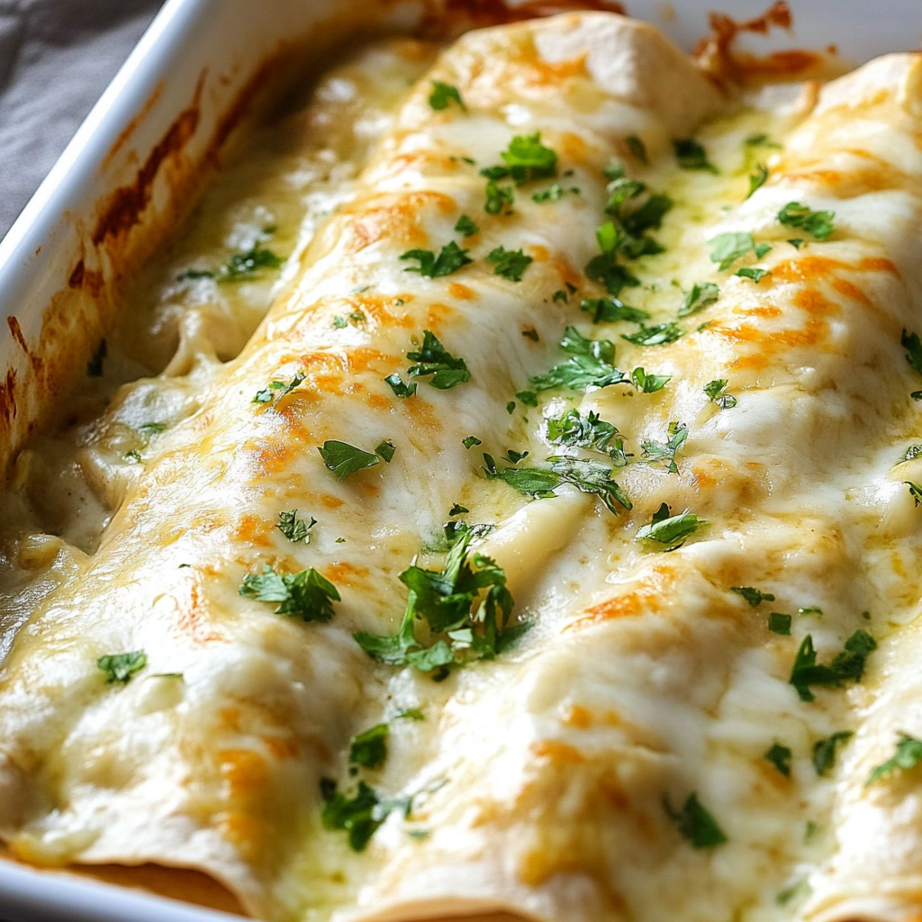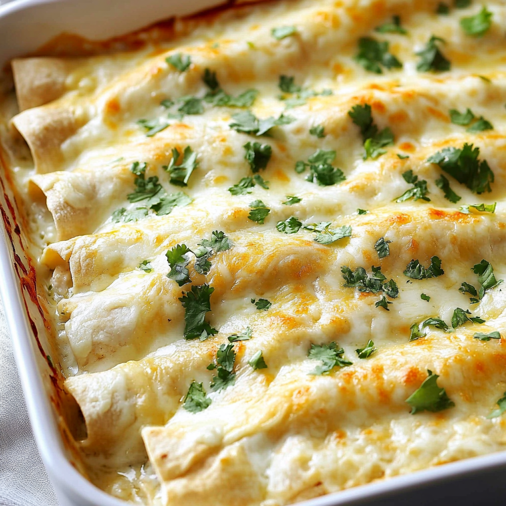Enjoy these Creamy White Chicken Enchiladas as a comforting meal that brings smiles around the table!
