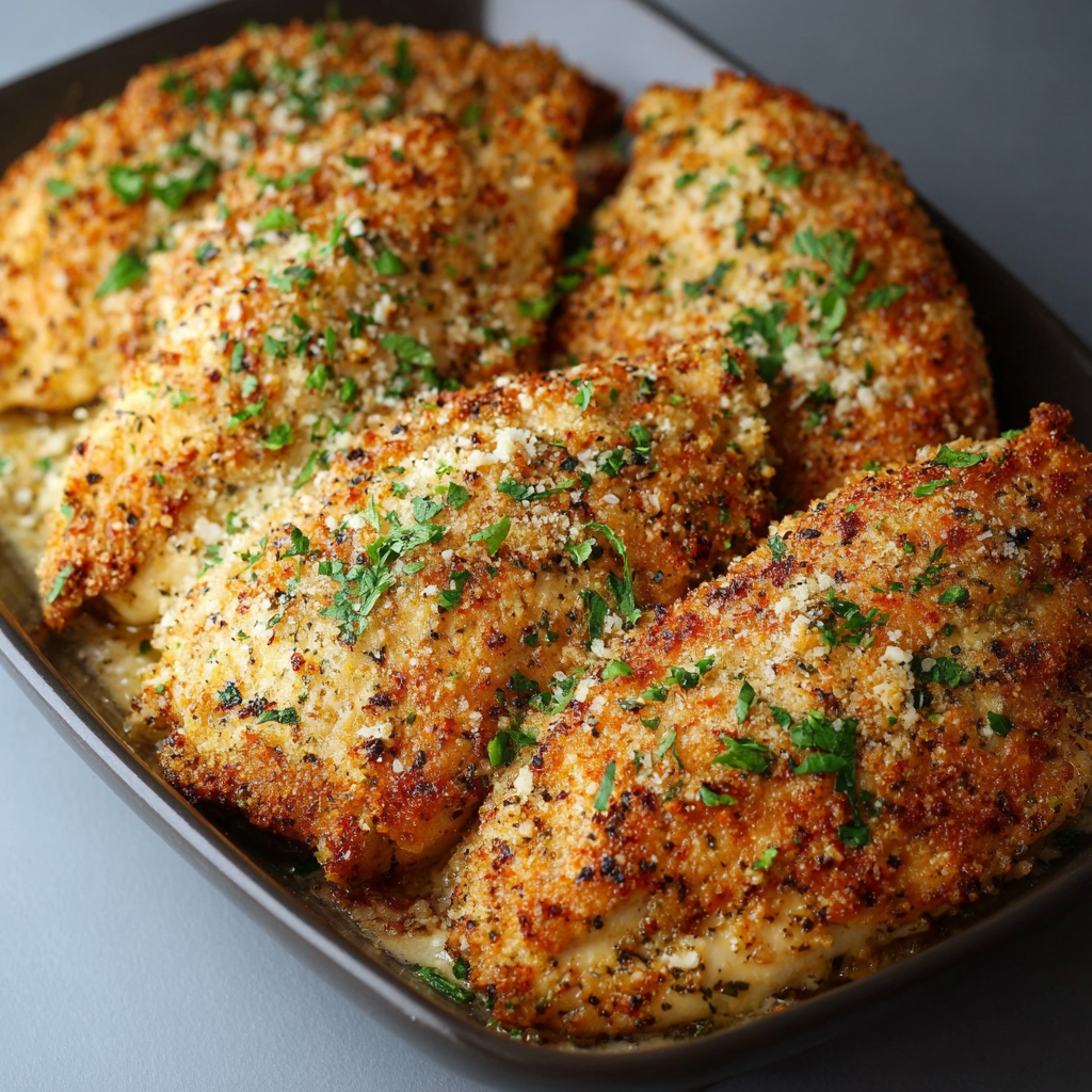 Garlic Parmesan Chicken Bake is a creamy, flavorful dish made with tender chicken breasts coated in garlic and Parmesan cheese, baked until golden.