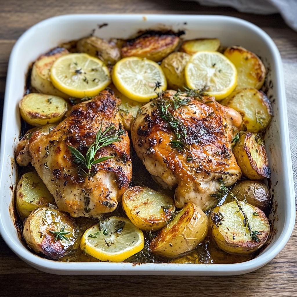- Flavorful Marinade: The blend of lemon juice, garlic, and herbs creates a mouthwatering taste that elevates the chicken and potatoes.