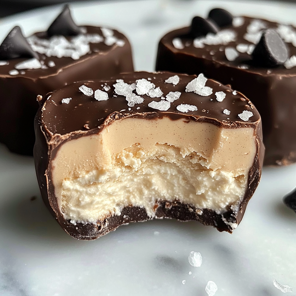 - Drizzle the melted chocolate over each filled mold and sprinkle with flaky sea salt if desired.