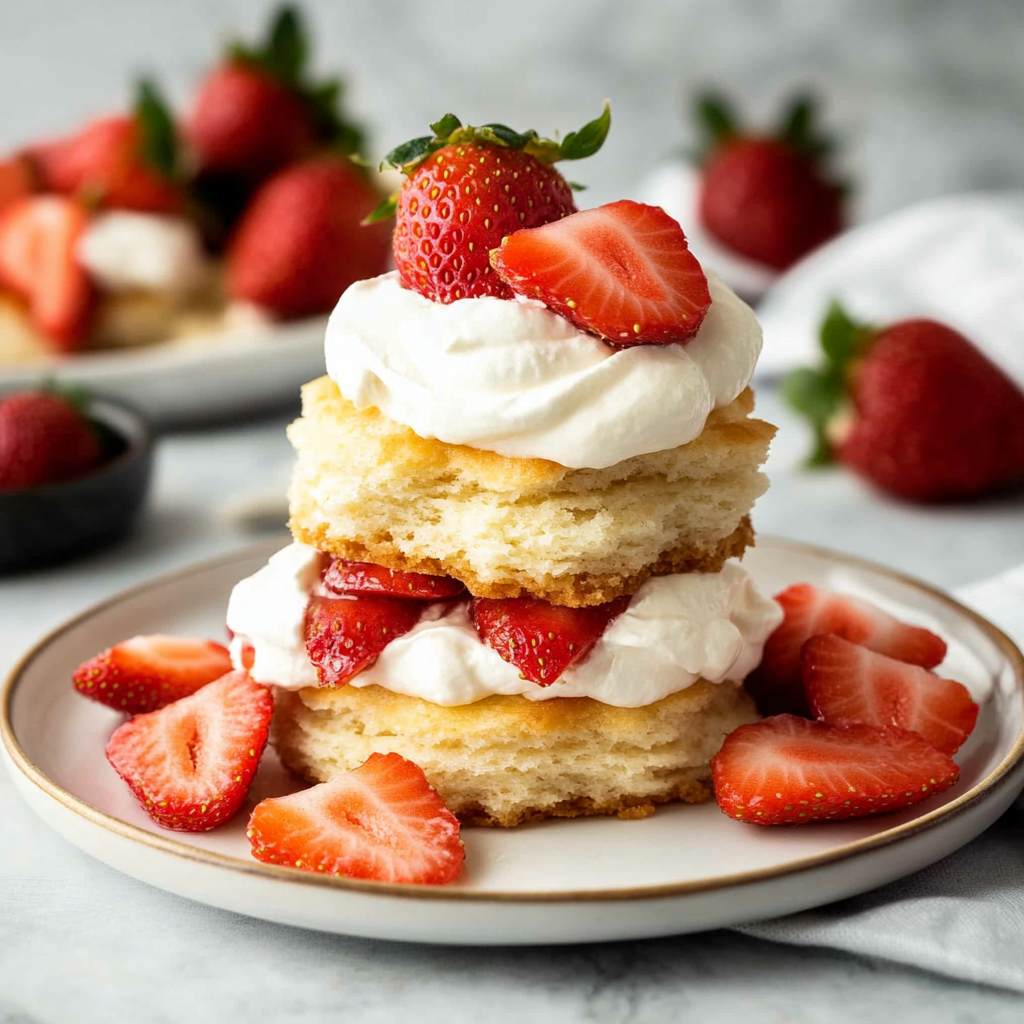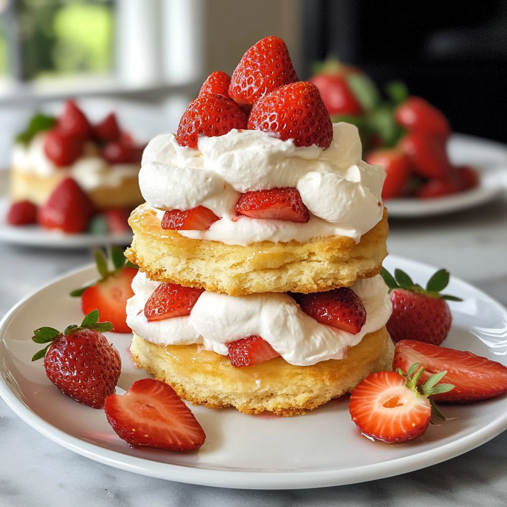 Indulge in the delightful experience of Homemade Strawberry Shortcakes with Strawberries and Perfect Whipped Cream. This classic dessert features tender biscuits layered with juicy strawberries and topped with fluffy whipped cream, making it the perfect treat for any occasion—from summer picnics to cozy family dinners. With fresh ingredients and a simple preparation method, you can whip up this crowd-pleaser in just about an hour. Customize your shortcakes by adding your favorite fruits or adjusting the sweetness to suit your taste. Whether enjoyed individually or served family-style, these strawberry shortcakes are sure to impress!
