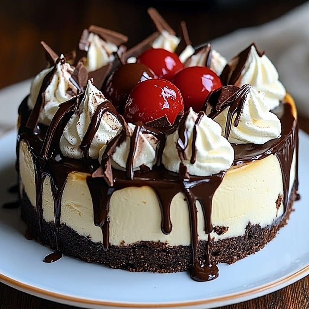 This Hot Fudge Sundae Brownie Cheesecake is a decadent dessert that combines rich chocolate with creamy cheesecake. Perfect for celebrations or cozy family gatherings, this dessert features a fudgy brownie base and a luxurious cheesecake layer topped with hot fudge, whipped cream, and cherries. Every bite of this cheesecake will leave you wanting more!