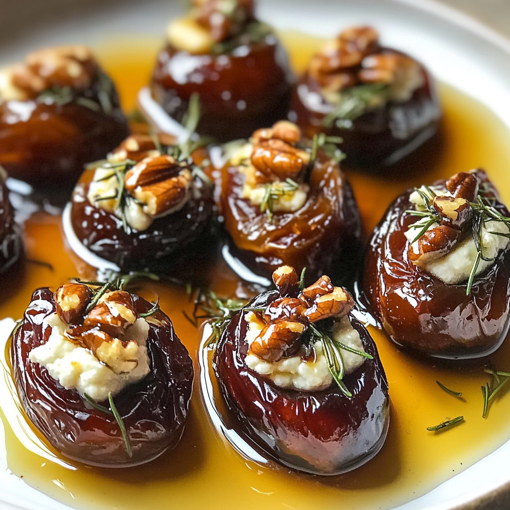Roasted Stuffed Dates are a delightful addition to any gathering, offering a perfect blend of sweet and savory flavors. These exquisite bites feature plump Medjool dates stuffed with creamy cheese and topped with crunchy walnuts, fresh rosemary, and a hint of orange zest. Whether served as an appetizer at a party or enjoyed as a healthy snack, these stuffed dates are sure to impress. With minimal prep time and a simple baking process, you can whip up this gourmet treat in just 30 minutes. The drizzle of hot honey adds the finishing touch, enhancing the overall sweetness and making them irresistible.