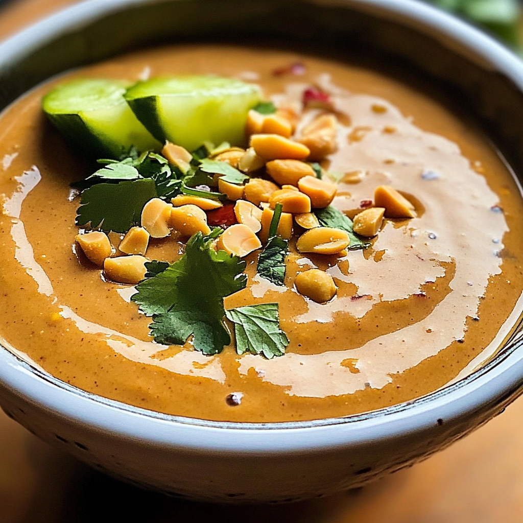 Thai peanut sauce is a rich, creamy condiment that brings an irresistible nutty flavor to any dish. It pairs beautifully with grilled chicken, adds depth to salads, and serves as a perfect dip for fresh spring rolls. This sauce is not only easy to make but also incredibly versatile, making it suitable for various occasions. With its delightful blend of flavors and quick preparation time, Thai peanut sauce is sure to impress your family and friends.