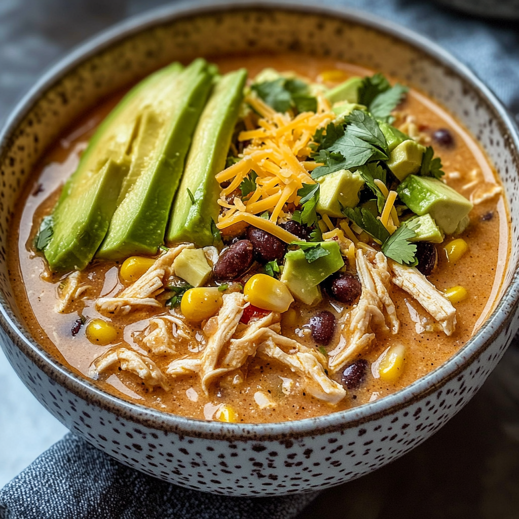 White Chicken Chili with Cream Cheese Recipe is a creamy, slow-cooked dish made with tender chicken, black beans, corn, and cream cheese, offering a comforting meal option.