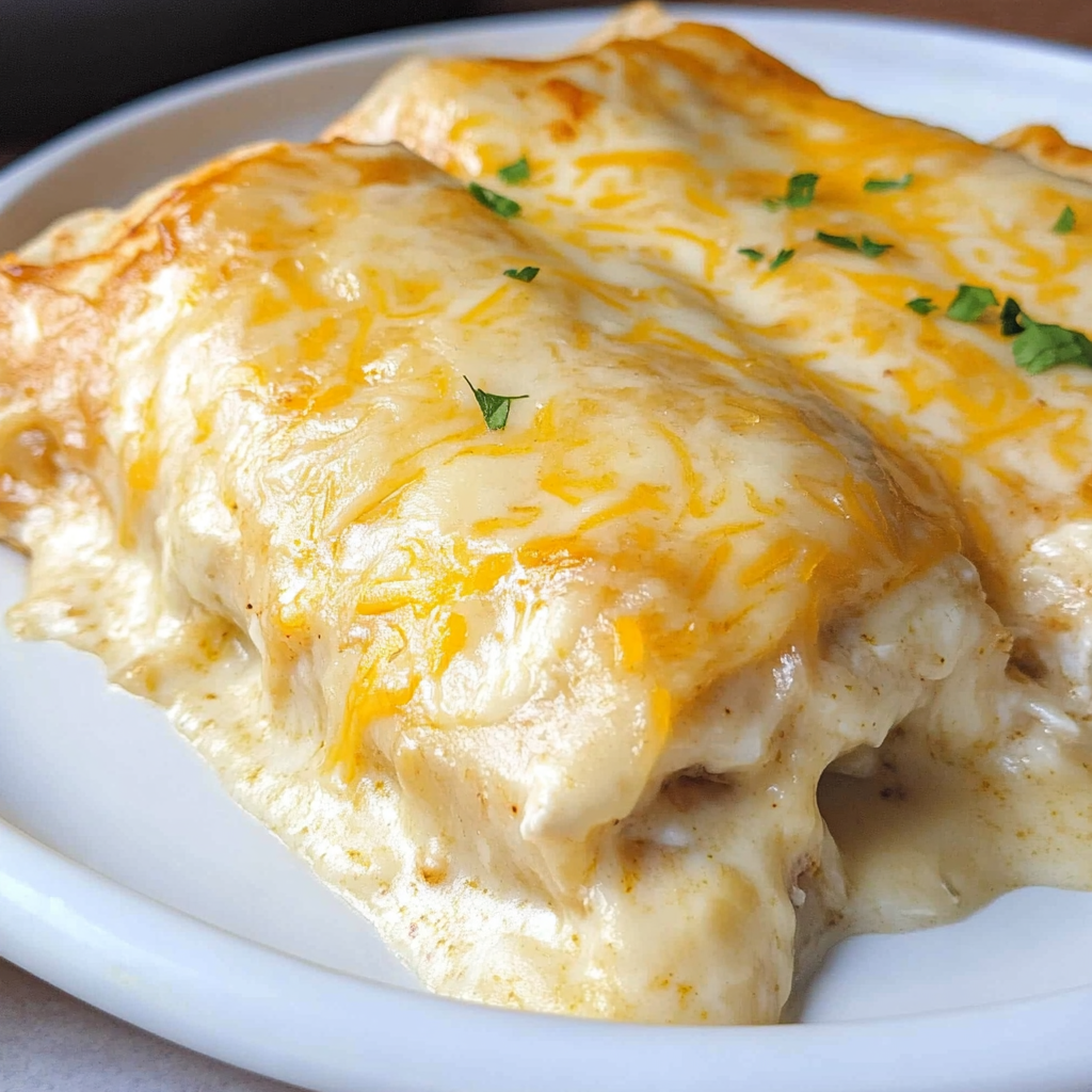 Creamy White Chicken Enchiladas are a delightful twist on the classic Mexican dish. This easy recipe combines soft flour tortillas with cheesy chicken filling, all draped in a luscious white sauce. Perfect for weeknight dinners or casual gatherings, these enchiladas are sure to impress with their rich flavor and comforting texture.